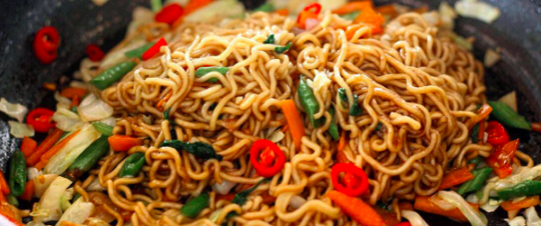 Bol suda noodleları kırmadan yaklaşık 7-8 dakika haşlayın. Wook tavaya ( çukur özel bir tava) zeytinyağını koyup, yıkanıp, ince ince (jülyen) doğranmış tüm malzemeyi koyup 5-6 dakika harlı ateşte kavurun. Üzerine süzdüğünüz noodle ekleyin. Arzu ettiğiniz kadar soya sosu ilave edip, servis yapın. Afiyet olsunArzu ederseniz, sebzeli noodle’ınıza yıkanıp, temizlenmiş ve tuzlu suda haşlanmış karides te ekleyebilirsiniz. (taze karides yerine dondurulmuş hazır karides kullanılabilir)